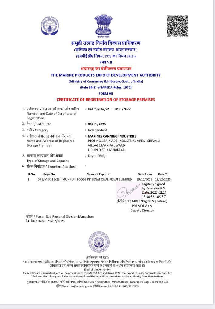 Marines Canning is a trusted seafood manufacturing company committed to delivering safe, nutritious and high-quality canned fish from the Indian seas to homes around the world. Located along the coastal region of Karnataka, we work closely with local fishermen to source the freshest catch every day. Our state-of-the-art processing facility follows strict hygiene standards, advanced sterilization technology, and globally recognized food safety practices to ensure that every can meets the highest quality benchmarks.