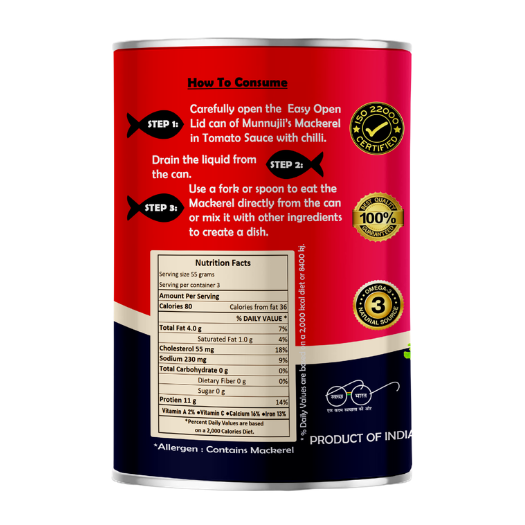 · PREMIUM INGREDIENTS: Simple, quality ingredients including mackerel, Tomato sauce , and chilli without any added preservatives.