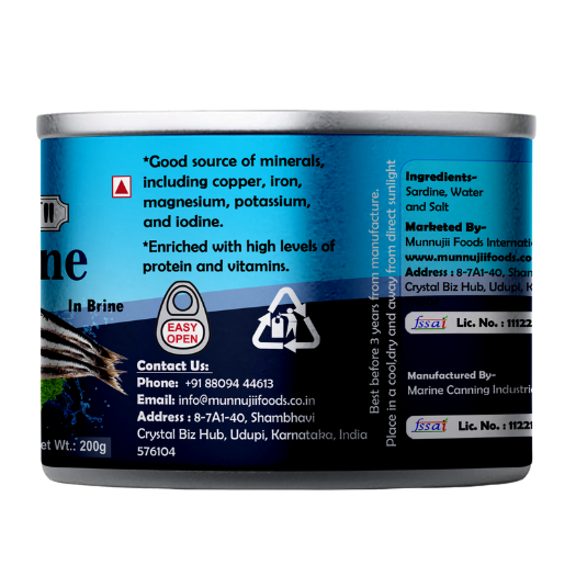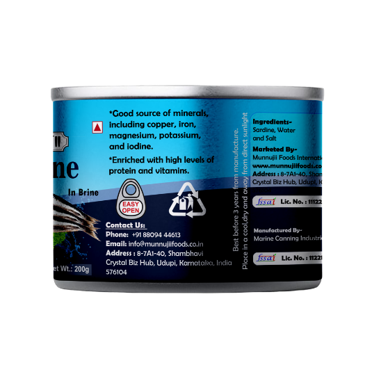 · Nutrient-Rich Sardines: Munnujii Canned Sardines in Brine 200g are packed with lean protein and Omega-3 fatty acids, essential for heart, brain, and overall health.