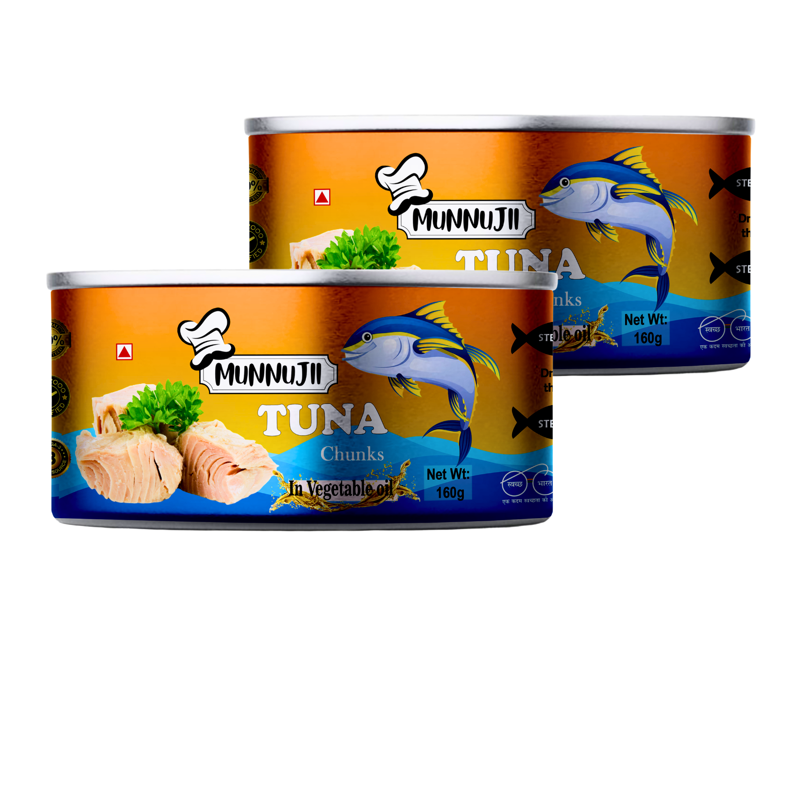 Protein-Packed Tuna: Munnujii Canned Tuna Chunks in Vegetable Oil 160g provide a rich source of lean protein and Omega-3 fatty acids for balanced nutrition.