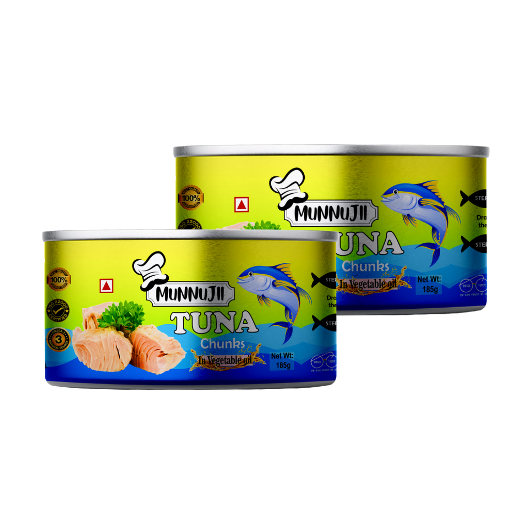 Rich in Nutrition: Munnujii Canned Tuna Chunks in Vegetable Oil 185g are packed with lean protein and Omega-3 fatty acids to support heart and brain health.