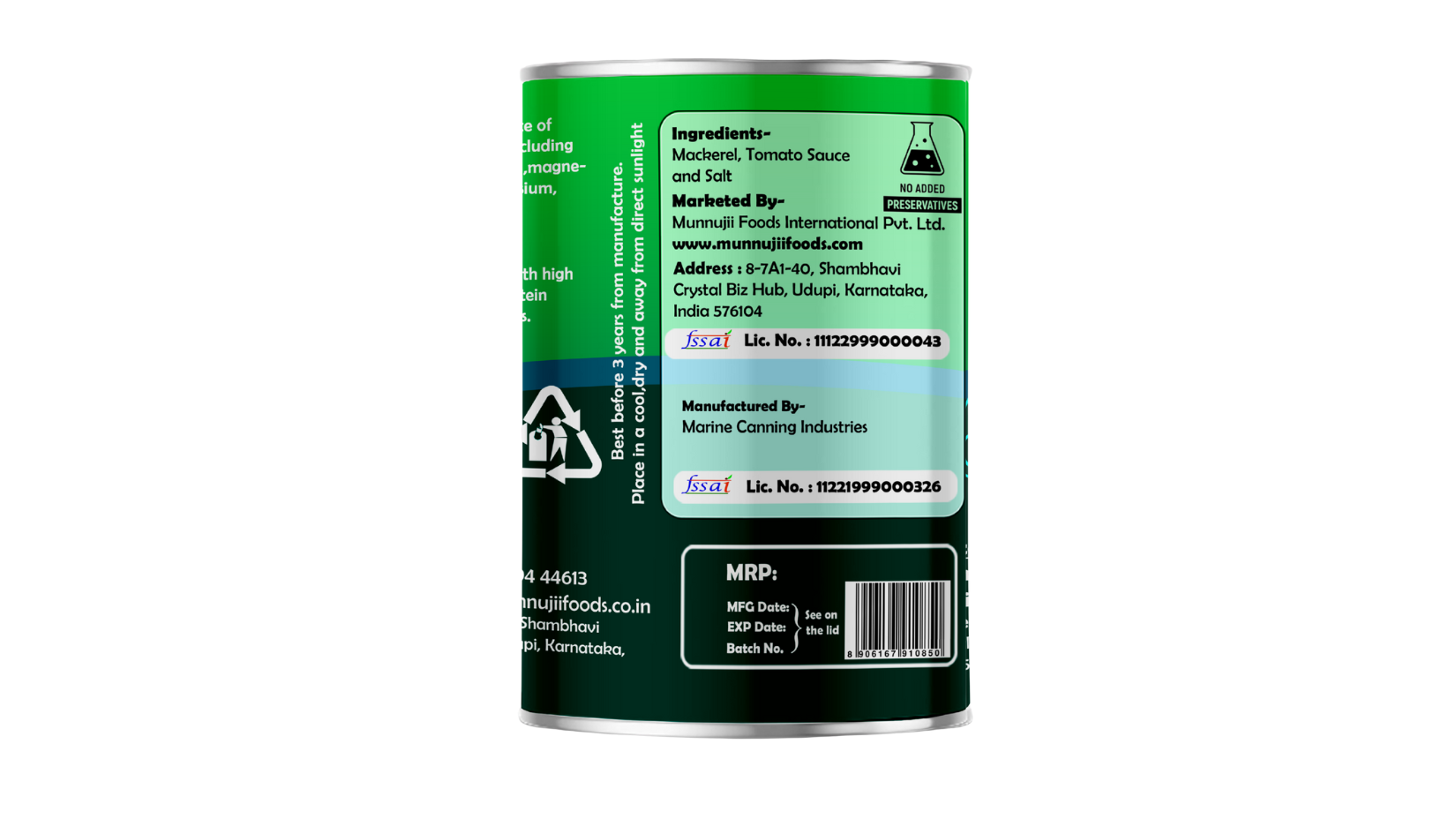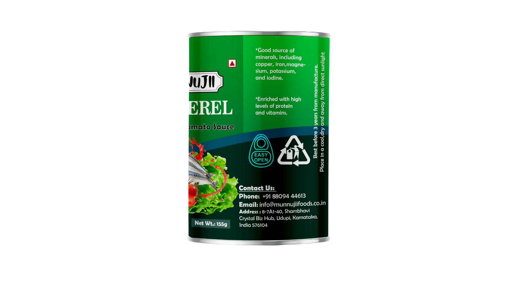 Munnujii Canned Mackerel in Tomato Sauce 155g Savour the Authentic Taste of Karnataka Experience the rich and authentic flavours of Karnataka with Munnujii Canned Mackerel in Tomato Sauce. Each 155g can is a delightful blend of high-quality mackerel, sourced locally from the pristine waters off the Karnataka coast, and expertly cooked in a rich, flavourful tomato sauce. Our commitment to freshness and quality ensures that you enjoy the best in every bite.