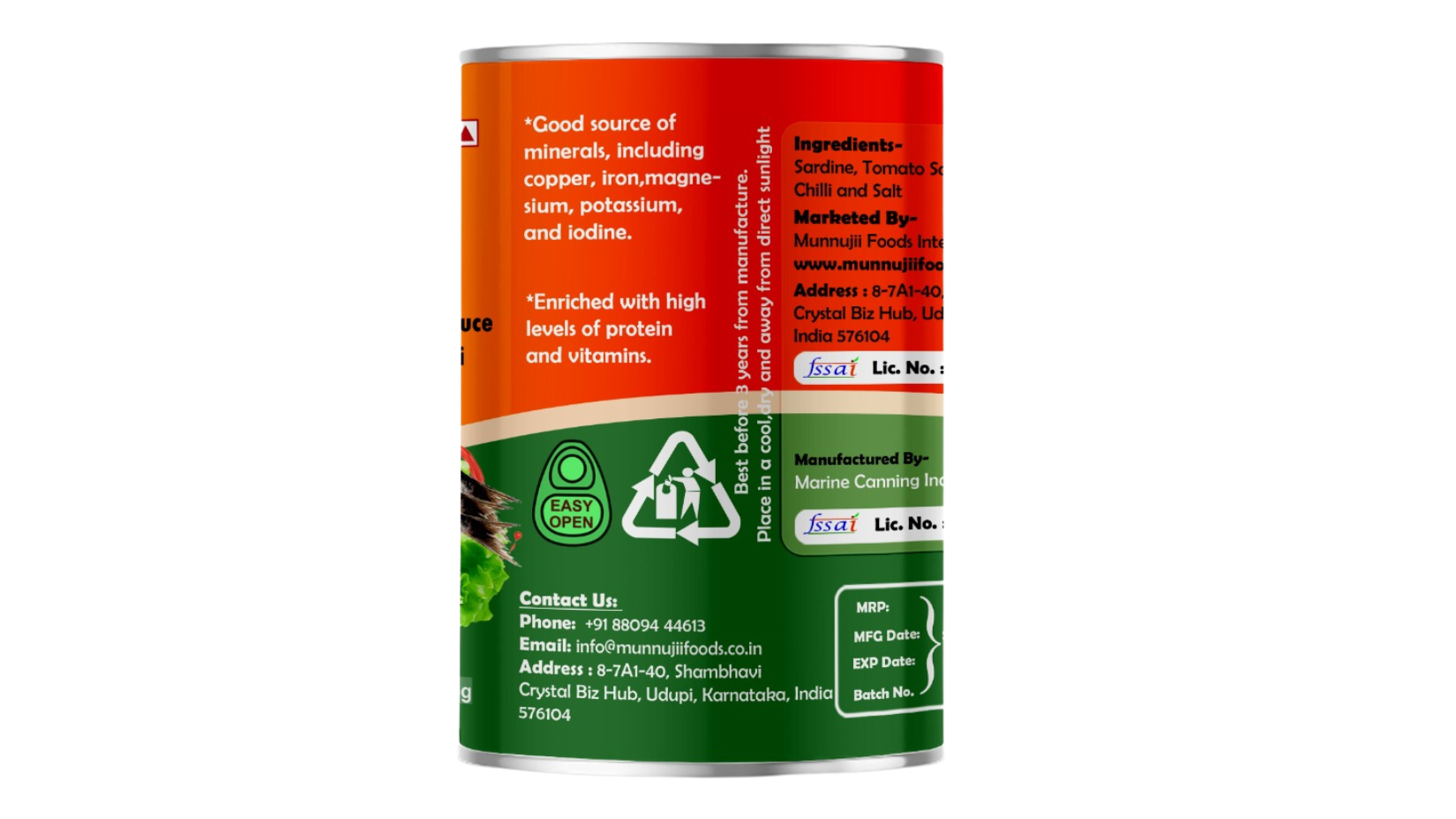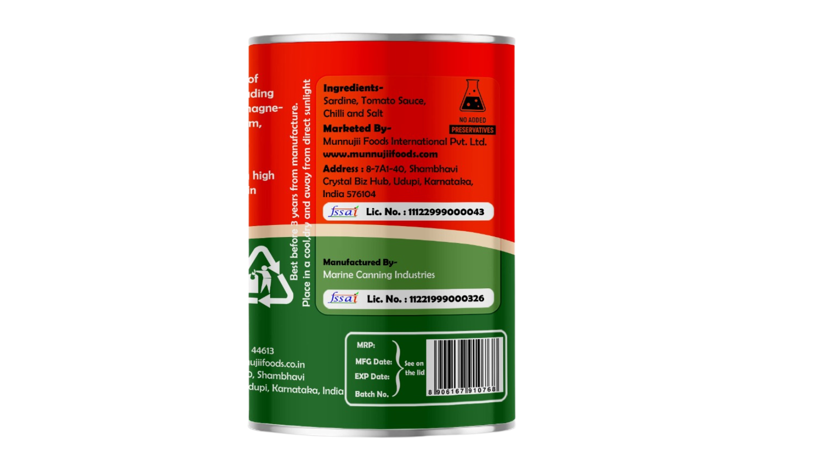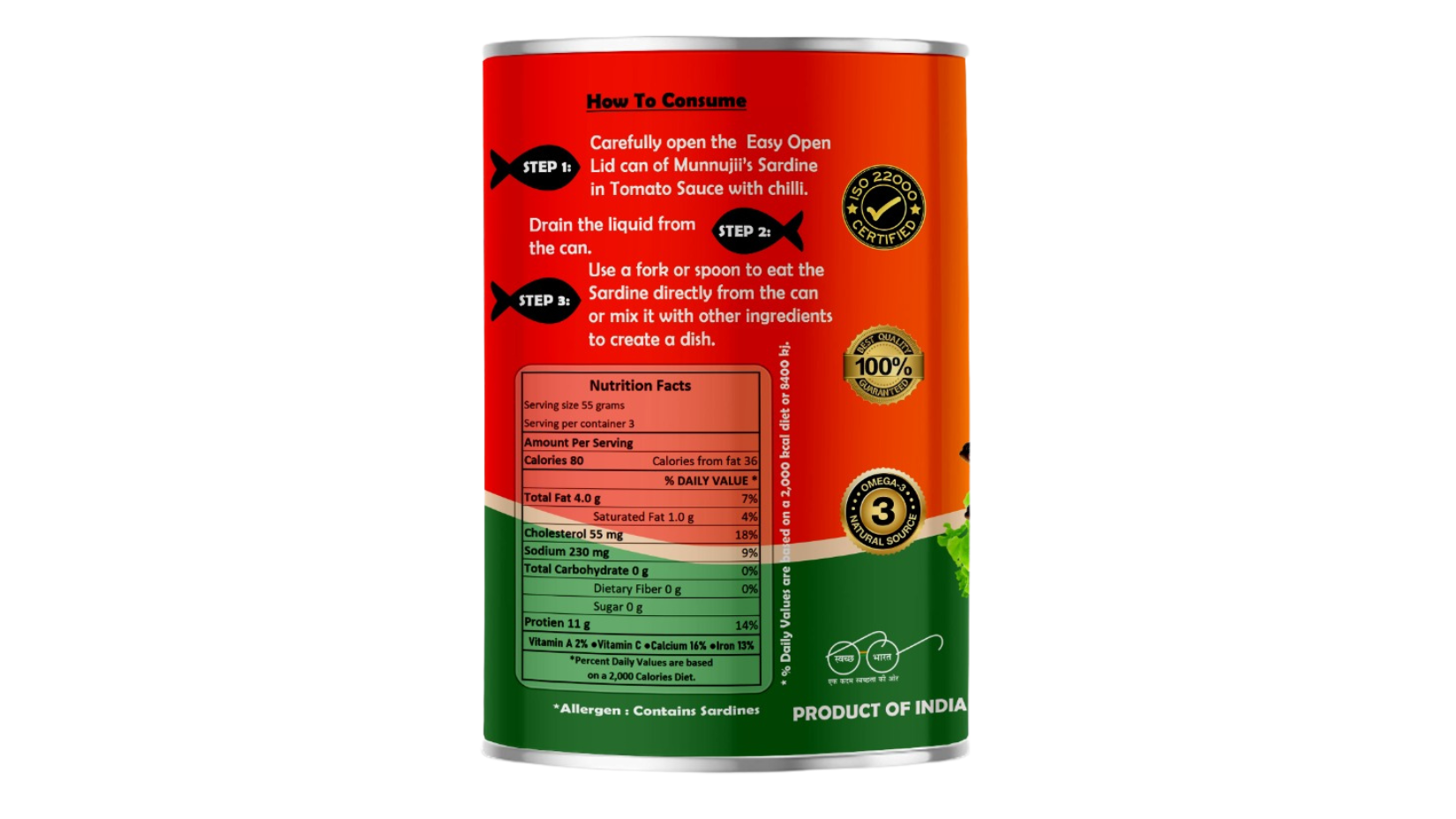 Item Type Name Sardine in Tomato Sauce with Chilli 155gm (pack of 2 )
